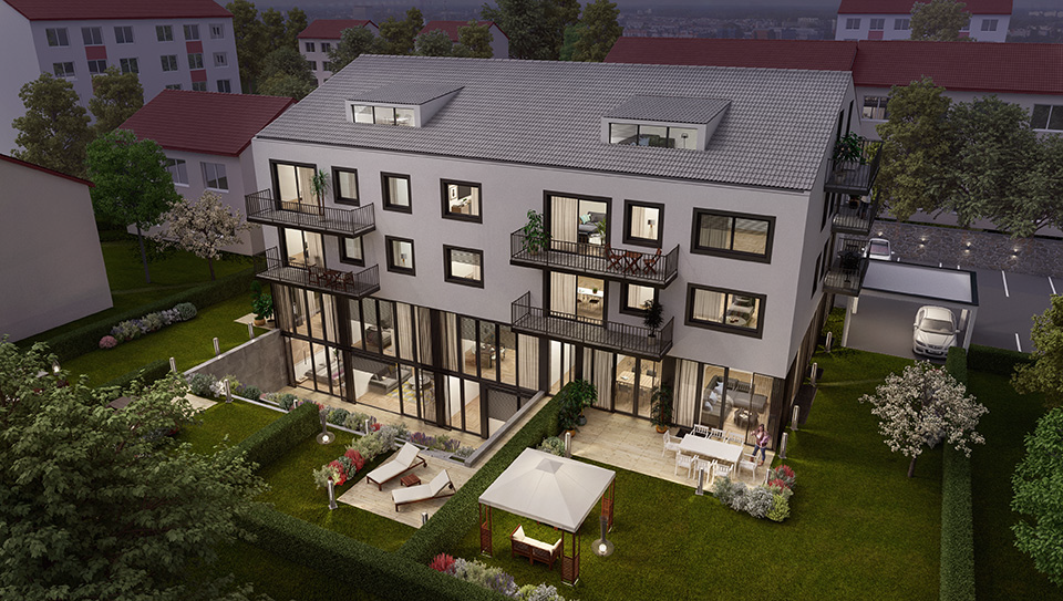 Mit unseren Architekturvisualisierungen können Sie genau das in Szene setzen, was für Ihre Kunden von Bedeutung ist. Dank der Flexibilität der Abbildungen, die unabhängig von Tageslichtszenarien und Jahreszeiten erstellt werden, sind diese jederzeit reproduzierbar und passen sich Ihren Anforderungen an.